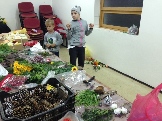 Témou ich práce bola spomienka a príprava na Dušičky. Z prírodných materiálov, ktoré si priniesli vyrábali dušičkovské vence a rôzne ozdoby na hroby. Maminy boli veľkou inšpiráciou aj pre ich deti, ktoré im pomáhali. SJ, foto H. Košová